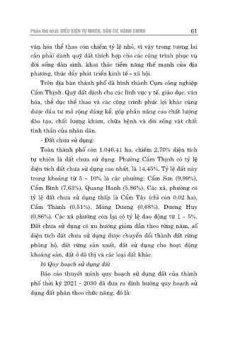 tự nhiên là đất chưa sử dụng. Phường Cẩm Thịnh có tỷ lệ