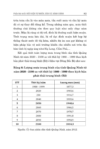 Bảng 6: Lượng mưa trung bình của tỉnh Quảng Ninh từ