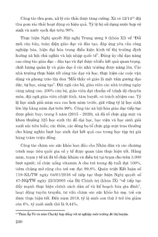 thu gom rác thải hoạt động có hiệu quả. Tỷ lệ hộ sử dụng nước hợp vệ