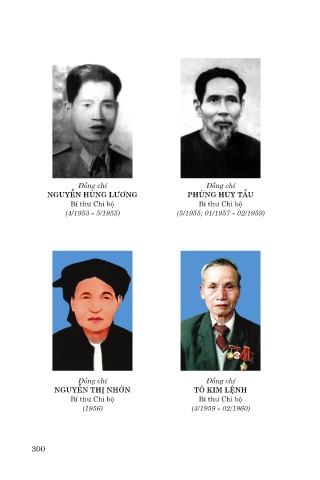 Đồng chí Đồng chí NGUYỄN HÙNG LƯƠNG PHÙNG HUY TẦU Bí thư Chi bộ Bí thư Chi bộ (4/1953 - 5/1955) (5/1955; 01/1957 - 02/1959) Đồng chí Đồng chí NGUYỄN THỊ NHỚN TÔ KIM LỆNH Bí thư Chi bộ Bí thư Chi bộ (1956) (3/1959 - 02/1960) 300