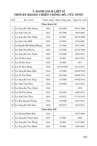 Stt Họ và tên Năm sinh Ngày nhập ngũ Ngày hy sinh