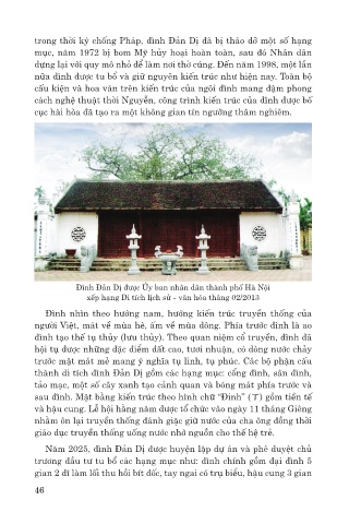 trong thời kỳ chống Pháp, đình Đản Dị đã bị tháo dỡ một số hạng