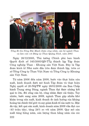 Toång Bí thö Noâng Ñöùc Maïnh thaêm coâng nhaân, caùn boä ngaønh Than