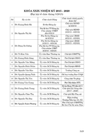 15 Đ/c Nguyễn Xuân Phương Ủy viên BCH Đảng bộ Bí thư Chi bộ xóm Hậu