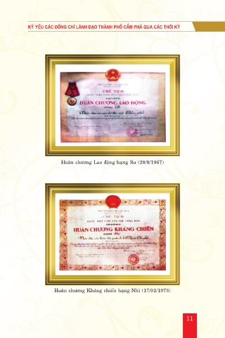 KYÛ YEÁU CAÙC ÑOÀNG CHÍ LAÕNH ÑAÏO THAØNH PHOÁ CAÅM PHAÛ QUA CAÙC THÔØI KYØ Huaân chöông Lao ñoäng haïng Ba (28/8/1967) Huaân chöông Khaùng chieán haïng Nhì (17/01/1973) 11