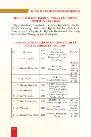 thöù XV (nhieäm kyø 1986 - 1988). Ñaïi hoäi baàu Ban Chaáp haønh
