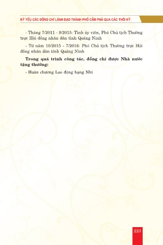 - Thaùng 7/2011 - 9/2015: Tænh uûy vieân, Phoù Chuû tòch Thöôøng