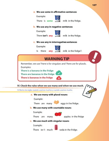 IV. Revisa las reglas cuando usamos muchos y cuando usamos mucho.
