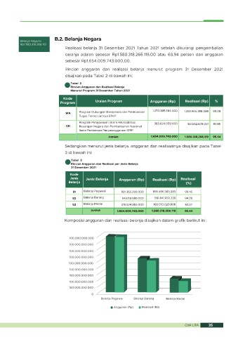 Komposisi anggaran dan realisasi belanja disajikan dalam grafik berikut ini: