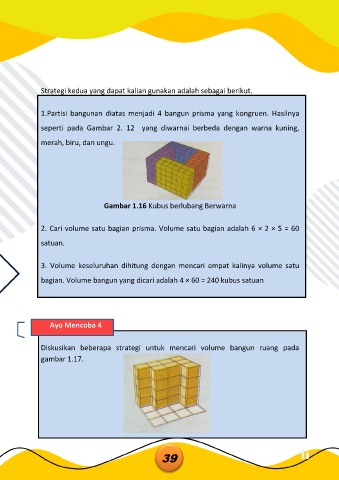 bagian. Volume bangun yang dicari adalah 4 × 60 = 240 kubus satuan