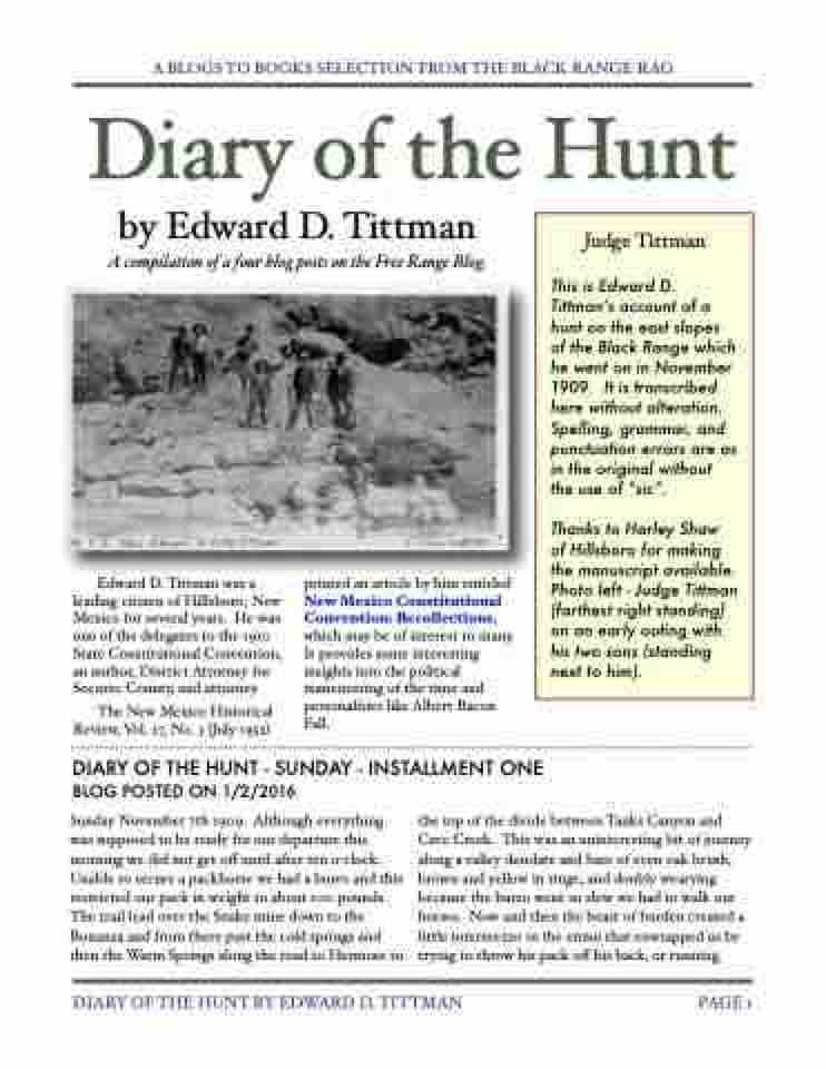 DIARY OF THE HUNT BY EDWARD D. TITTMAN! PAGE 1