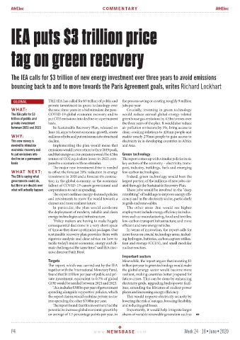 GLOBAL THE IEA has called for $3 trillion of public and the process saving or creating roughly 9 million