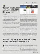 Leading Russian online job search portal HeadHunter carried out a successful IPO on NASDAQ, on May 9 placing 16.3mn ADRs or 32% of capital at $13.5 per ADR, the upper range