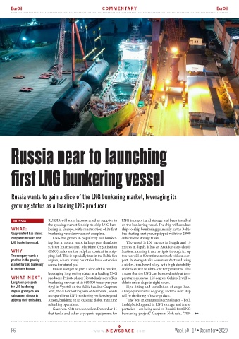 completed Russia's first LNG has grown in popularity as a bunker- cubic metre storage tanks.
