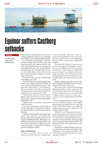 NORWAY EQUINOR has suffered setbacks at the Johan to the Hammerfest LNG plant. The com-