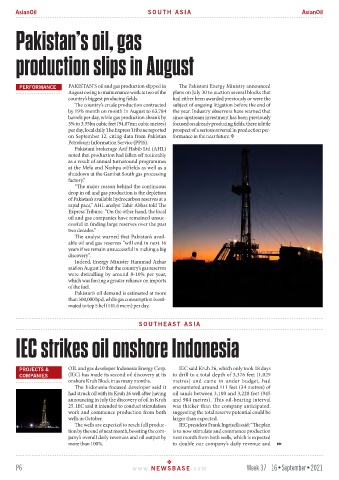 PERFORMANCE PAKISTAN’S oil and gas production slipped in The Pakistani Energy Ministry announced