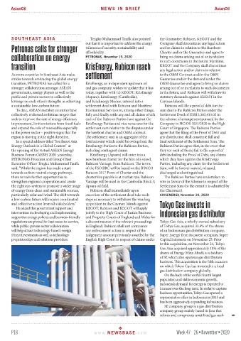 public and private sectors to collectively (Aspara); KrisEnergy (Cambodia); statutory demands against KEGOT in the