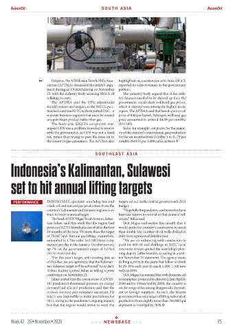 PERFORMANCE INDONESIA’S upstream watchdog has said targets set out in the central government’s 2021