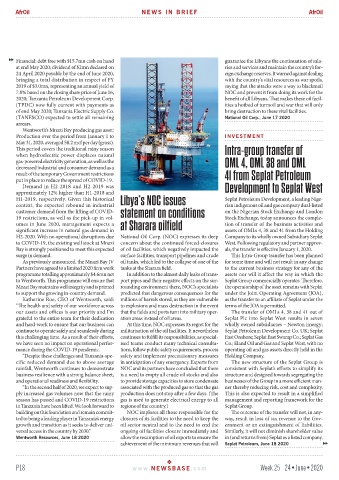 H2-2020. With no operational disruptions due National Oil Corp. (NOC) expresses its deep Company to its wholly owned Subsidiary Seplat