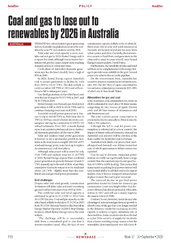 AUSTRALIA DEMAND for coal and natural gas as generating transmission capacity is likely to be an obstacle.