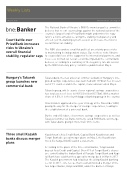 buy out Asia Credit and Capital. Over 41% of Tengri Bank’s shares are controlled by the Indian Bank of Punjab. Tengri Bank and Kapi- tal Bank have said that they agreed to merge back in March 2017. The Kazakh government had to bailout the ailing Kazakh banking sector in 2017 - one rescue that resulted involved a merger of the two largest banks, Halyk and KKB, under the banner of Halyk.