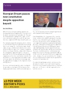 President Giorgi Margvelashvili can now veto the document, in which case it will return to parlia- ment for a new round of voting. However, only half plus one - or 76 votes - will be required to over- turn his veto.