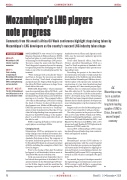 Mozambique’s nascent LNG industry is gaining momentum, with the country hopeful that its abundant gas resources and geographi- cal location make it well-placed to supply gas to Asia and beyond. A second planned project, the ExxonMobil-led Rovuma LNG, is progressing towards an FID, which is anticipated by April 2020.
