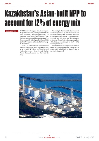 struction of the NPP. These are China National vicinity of Lake Balkhash in Almaty Region as