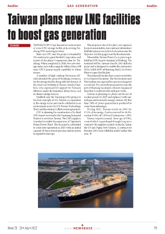 chung. When completed in 2026, two new stor- terminal will be Taiwan’s fourth LNG delivery