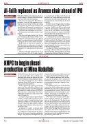 KPC set up a new subsidiary, Kuwait Inte- grated Petroleum Industries Co. (KIPIC), to carry out the development of the downstream and LNG import facilities in the southern port of Al-Zour, with the refinery to be commissioned in 2020. The second phase will involve the con- struction of a new refinery. Buaijan noted that KNPC will be building 58 petrol stations over three phases that will be completed by 2024, adding that Pan Arab Consulting Engineers had been chosen to provide consulting and engineer- ing services or phases 1 and 2.