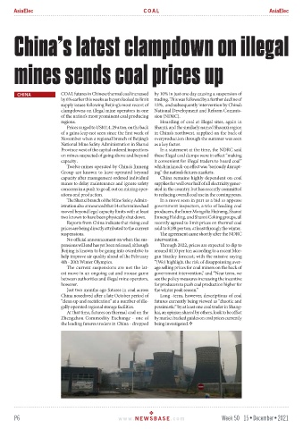 CHINA COAL futures in Chinese thermal coal increased by 10% in just one day causing a suspension of