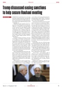 PRESIdENT donald Trump discussed easing sanctions on Iran to help secure a meeting with Iranian President hassan Rouhani on the side- lines of the UN General Assembly gathering in New York later this month, Bloomberg reported on September 11.
