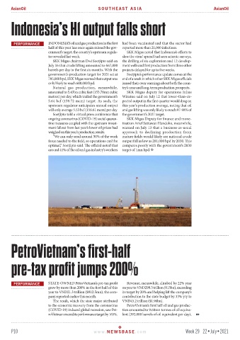 PERFORMANCE INDONESIA’S oil and gas production in the first had been vaccinated and that the sector had