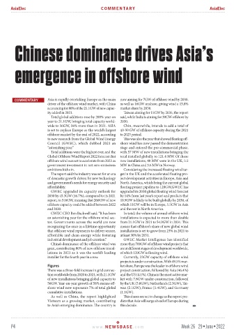 COMMENTARY Asia is rapidly overtaking Europe as the main now aiming for 7GW of offshore wind by 2030,