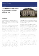 The Slovak minister of education resigned on August 17, a move that is likely part of a deal to- wards putting to bed the recent crisis in the gov- erning coalition.