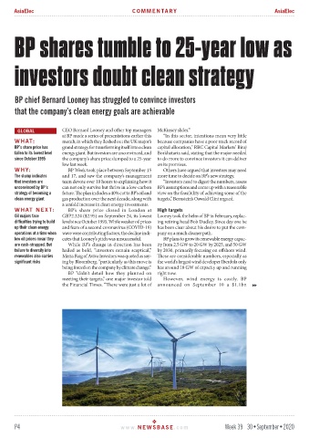 low oil prices mean they cates that Looney’s pitch was unsuccessful. BP plans to grow its renewable energy capac-