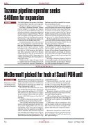 Currently, Saunyama noted, some sections of the 1,710-km Tazama line consist of 8-inch (203- mm) pipe. The differences in diameter serve to limit the system’s capacity and have brought throughput down to about 660,000 tonnes per year (tpy), or 13,200 barrels per day (bpd), he said. This is equivalent to just 60% of Tazama’s design capacity of 1.1mn tpy (22,000 bpd), but volumes should rise to 95% of design capacity, or 1.045mn tpy (20,900 bpd) after the installation of wider pipes, he said.