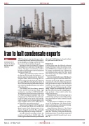 IRAN has plans to stop exporting gas conden- sate and refine it locally instead to produce gaso- line and naphtha, according to an interview with the country’s oil minister Bijan Zanganeh.