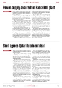 Once the ngL plant is operational and hooked up to the Iraqi gas network, it will feed power stations to generate 1.5 MW or more of electricity, according to BgC managing director Frits Klap. He added: “ e new plant will have two trains that will require around 70 megawatts of electricity to run e ciently.”