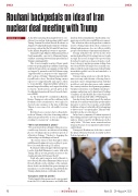 A day a er indicating Iran might lower its con- ditions for a nuclear deal meeting with Donald Trump, Iranian President Hassan Rouhani on August 27 backpedalled and returned to Tehran’s previous position that the US must li sanctions ontheIslamicRepublicifitwantstonegotiate.