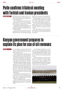 Andrew Kamau, the Principal Secretary of the Petroleum Department of Kenya’s Ministry of Energy and Petroleum, unveiled plans for the visit last week during a discussion about the country’s rst oil export cargo. He said the gov- ernment wanted to explain what would happen to the $12mn earned from the sale of the crude to ChemChina, a state-run Chinese company.