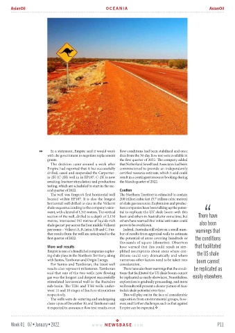 The well was Empire’s first horizontal well The Northern Territory is estimated to contain