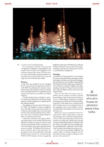 In July 2021, gas supplies from Iran dropped Tehran had resorted to tapping gas storage facil-
