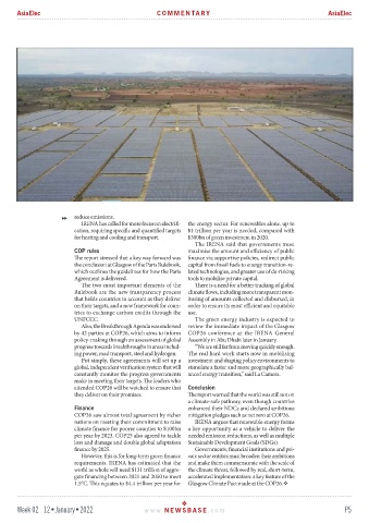 IRENA has called for more focus on electrifi- the energy sector. For renewables alone, up to