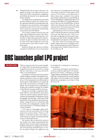 calls for Kinshasa to make LPG available to con- tially state-owned entity that owns the country’s