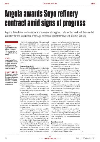 awarded a contract to for the construction of a new refinery at Soyo in another ambitious refining project award to a