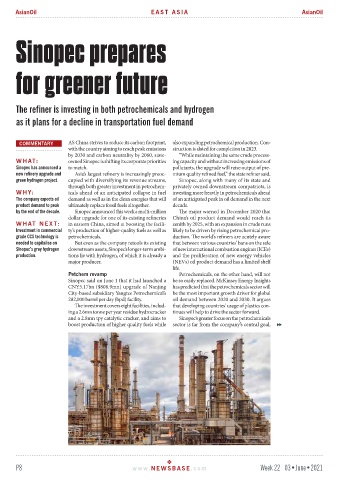 COMMENTARY AS China strives to reduce its carbon footprint, also expanding petrochemical production. Con-
