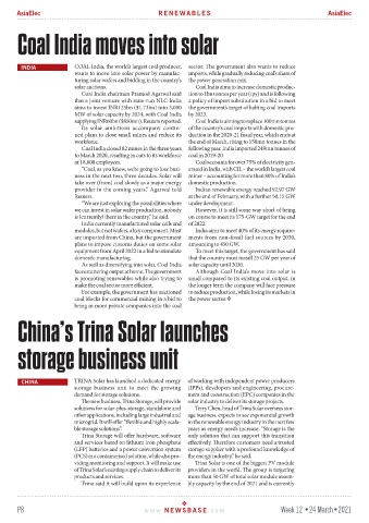 faces stuttering output at home. The government Although Coal India’s move into solar is