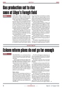 Initially, WOC will use output from Faregh for a gas-injection programme at Intisar-103. It intends to inject the gas into this field to help maintain reservoir pressure and improve pro- duction rates. Later, it may be able to use the coastal pipelines to deliver additional volumes to customers in Libya’s eastern regions. Among