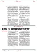 Citygasconsumptionstoodat92.5bcmin2018. Sinopec Gas also anticipates industrial demand rising from 110.6 bcm last year as the government introduces more stringent environ-